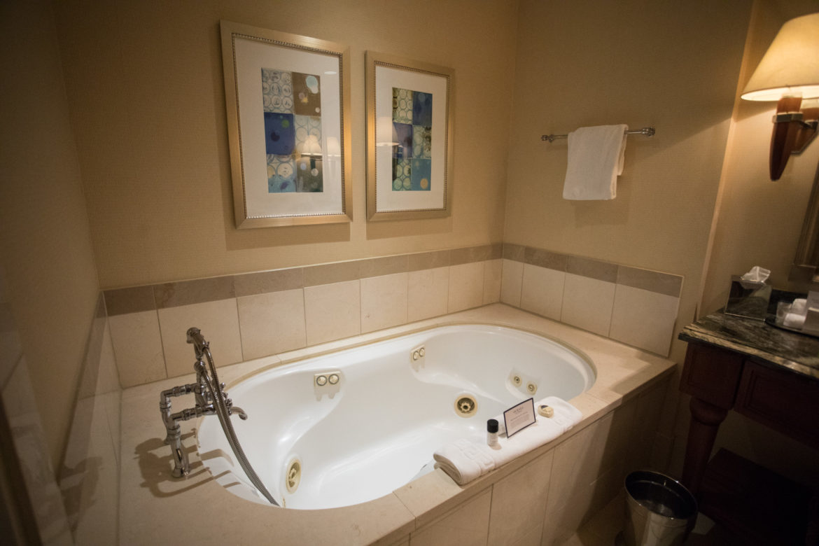 At the Grand Hyatt Hotel and Marriott Riverwalk, guests must secure the presidential suite to luxuriate in a lavish bathtub. The other hundreds of bathrooms have standard tubs with showers.