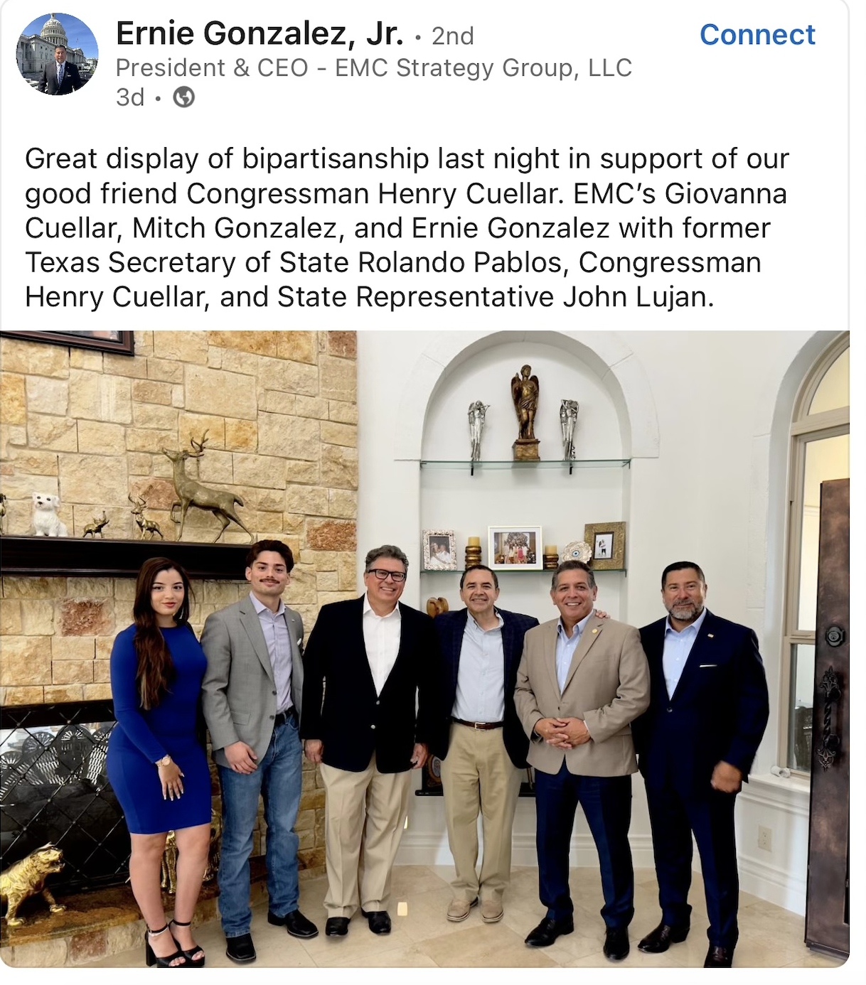 Despite the indictment, Cuellar has been conducting business as usual, traversing a massive district that runs from the U.S. Mexico border up nearly to New Braunfels.