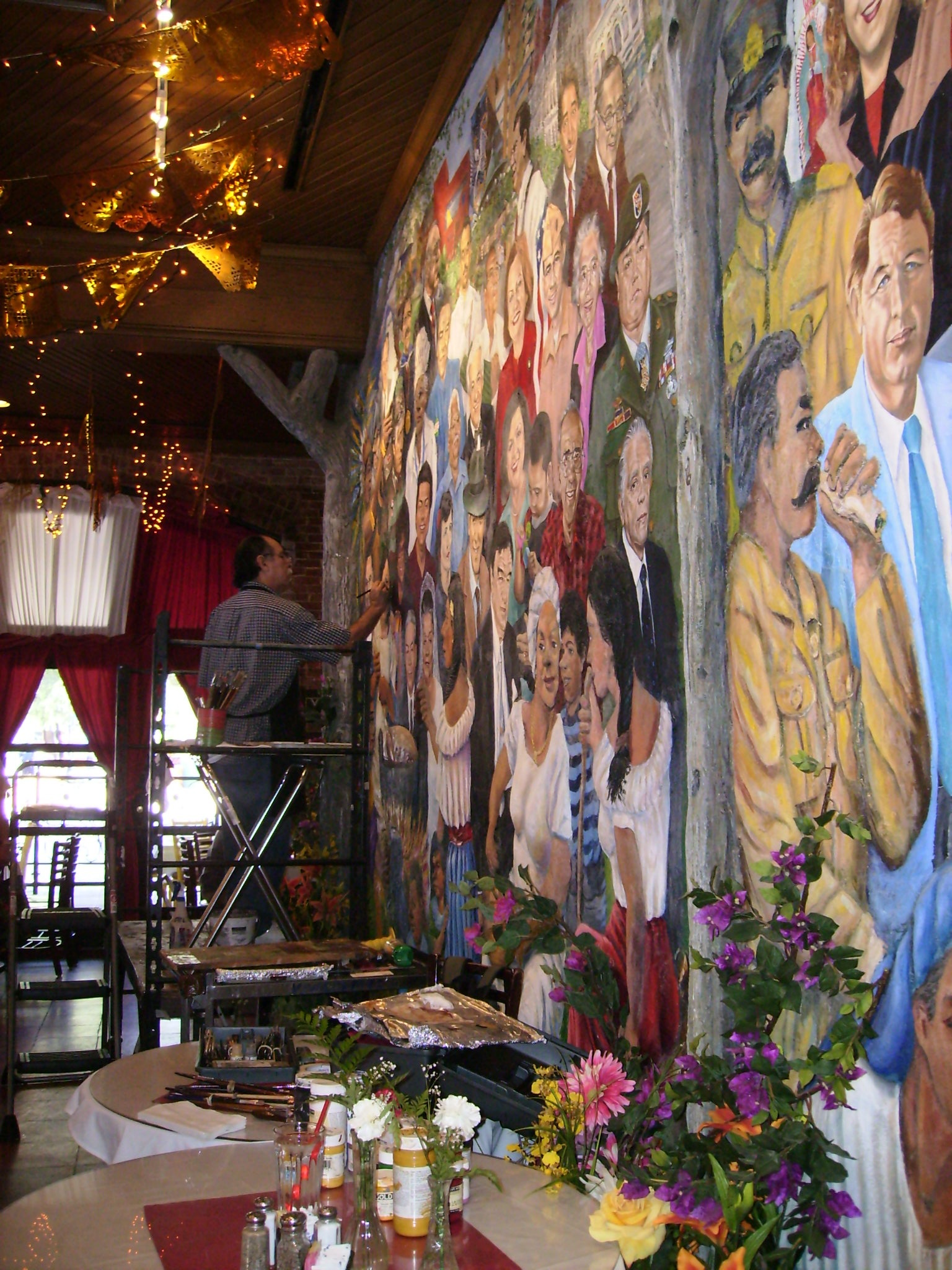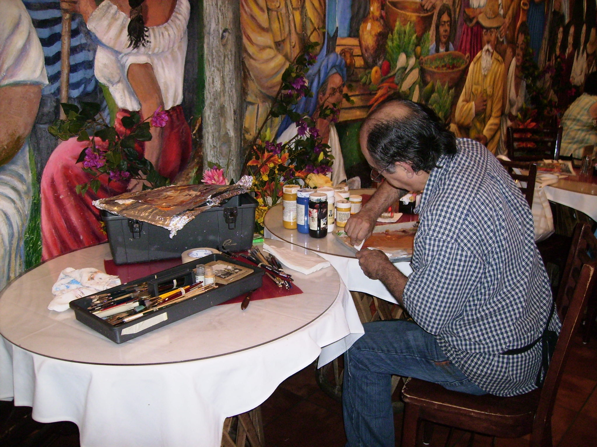 When it’s time to paint, Ytuarte closes off a section near the mural, mixes his paints, and gets to work, sometimes amid feasting families eyeing the artist in his prime, trying to catch a peek at the newest addition to the wall.