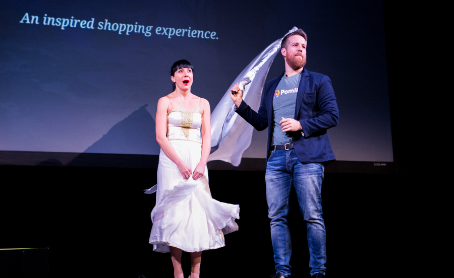 *Top image: David G. Ortega, Co-founder of Pomika, performs “magic” by changing clothes rapidly, like the magic of Pomika to use searchable images rather than words for online shopping. Photo by Kathryn Boyd-Batstone