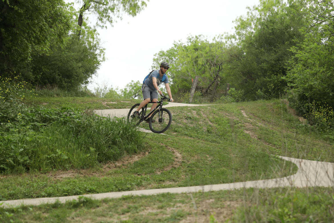 The Trailist recommends arriving early in the morning before the day heats up and parking at the main lot off of Palo Alto Road. The entire concrete trail is nearly 7 miles one way, 14 miles for an out-and-back. That’s easy enough to do in a couple hours with frequent stops. There’s an option to extend the ride to the concrete trail along Mitchell Lake, another jewel of the Southside.