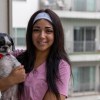 Paige Severson pets her dog, LoLo, in her apartment in the Medical Center on Sept. 7, 2025. Credit: Diego Medel / San Antonio Report